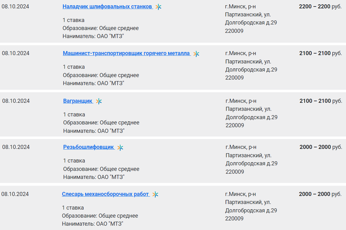 Также в списке вакансий от МТЗ значатся наладчик шлифовальных станков, машинист-транспортировщик горячего металла, вагранщик, резьбошлифовщик, слесарь механосборочных работ.