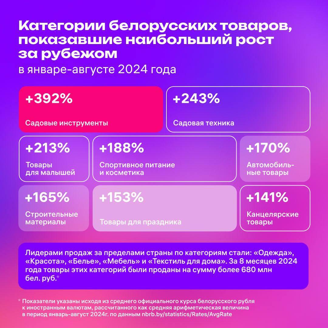 Как сообщили в компании, на онлайн-площадке объем продаж белорусских товаров за пределами страны в январе-августе 2024 года вырос до 1,2 млрд белорусских рублей, что на 42% больше в сравнении с уровнем аналогичного периода предыдущего года.