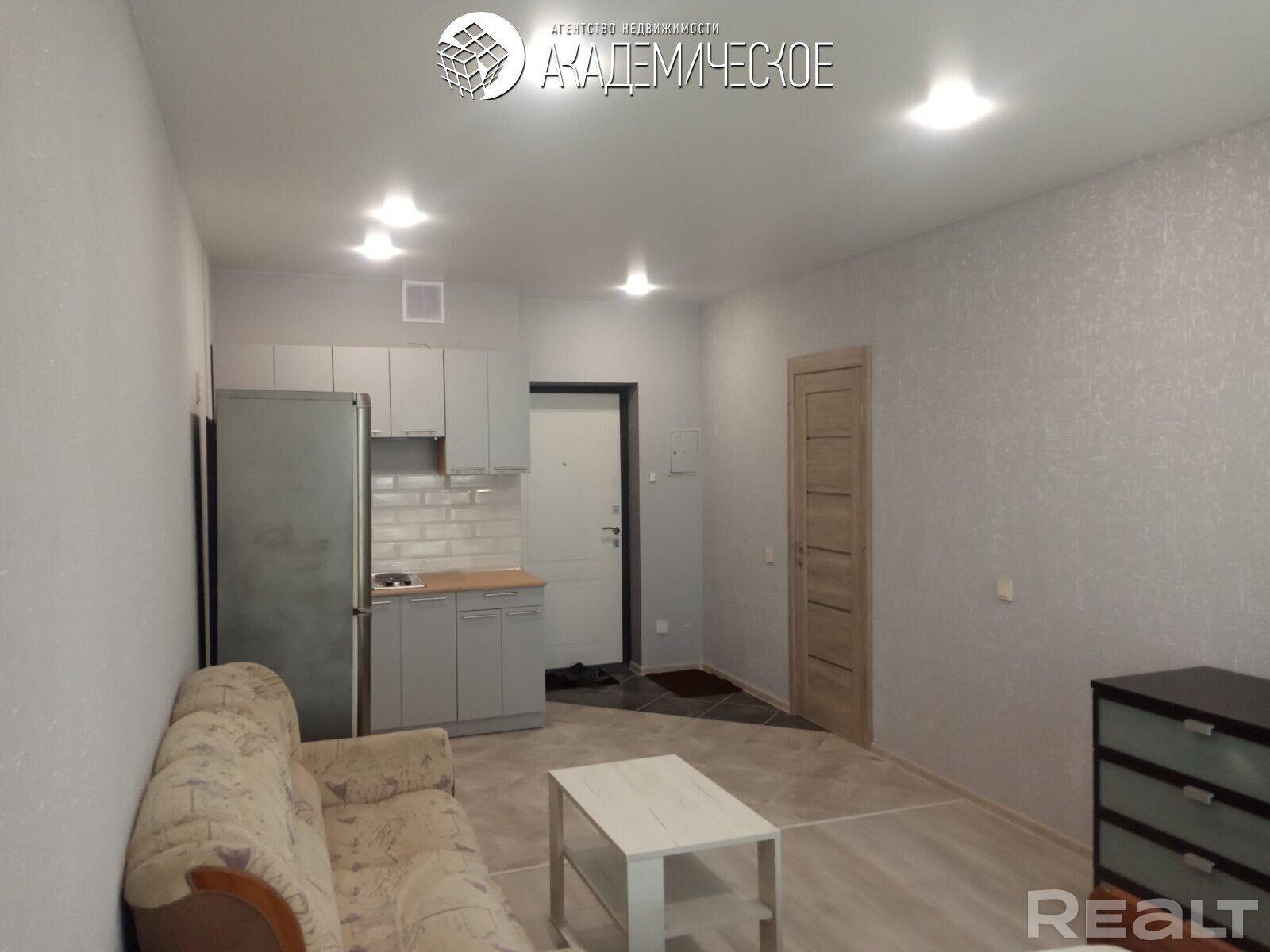Очередной вариант в «Минск Мире». Уютная небольшая студия с общей площадью 29,8 кв. м. Каркасно-блочный дом новый – был построен в 2023 году. Квартира находится на втором этаже. Сделан ремонт: натяжные потолки, покрашенные стены, на полу – ламинат и плитка. Также установлены кухня и шкаф-купе. Хозяева сообщают, что будет куплен холодильник и духовой шкаф. В студии есть лоджия, санузел совмещенный. В квартале есть спортивные площадки рядом с домом, а через дорогу находятся школа, детский сад, магазины и кафе.