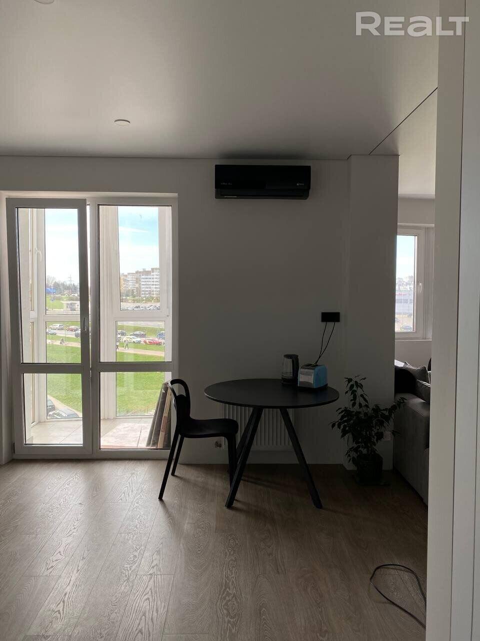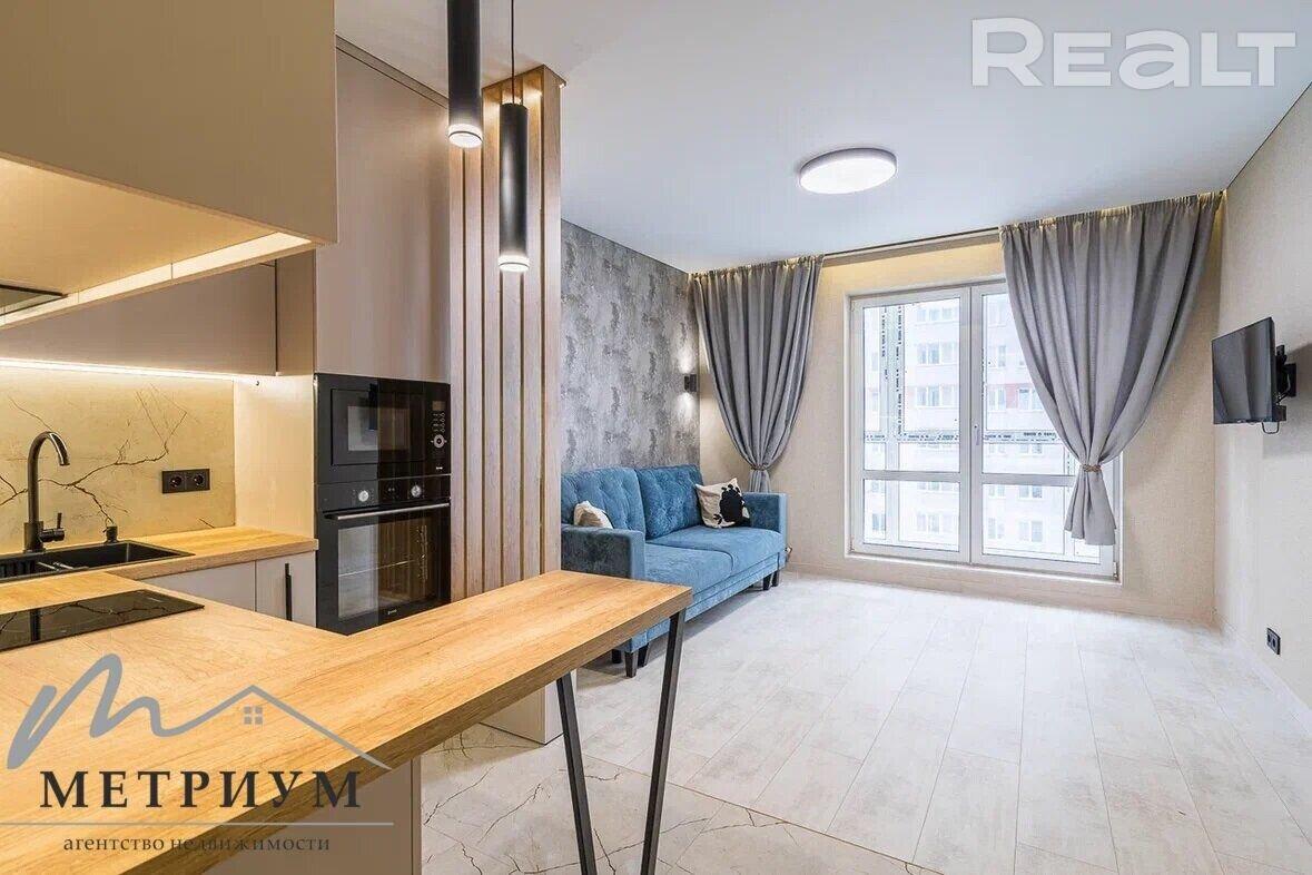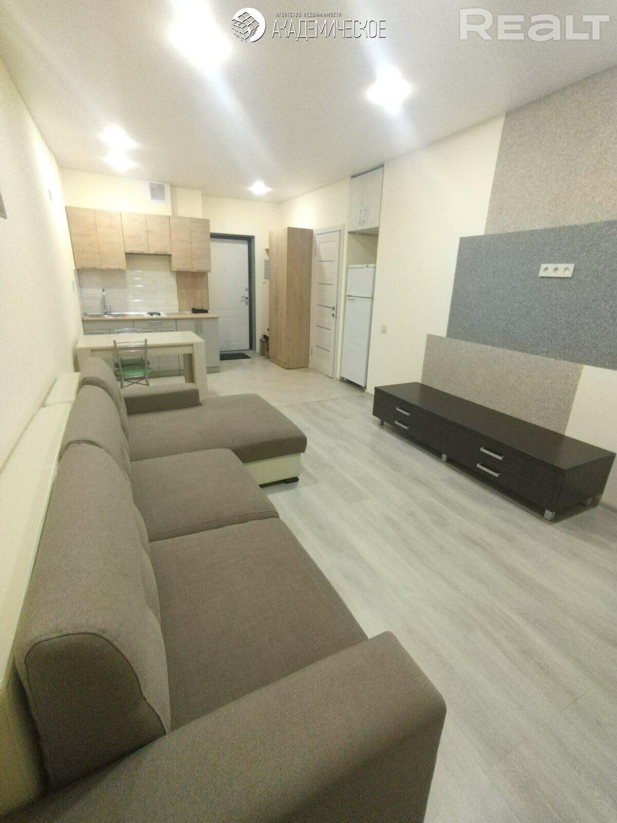 Следующая студия находится рядом с «Минск-Ареной». Вариант более просторный – общая площадь квартиры составляет 35 кв. м. Монолитный дом был построен в 2014 году, студия находится на 5-м этаже. В квартире проведен высокоскоростной интернет. Квартира укомплектована мебелью и техникой: кухня, телевизор, холодильник, стиральная машина, душ, шкаф-купе, металлическая дверь, застекленная лоджия. Для желающих имеется подземный паркинг. Санузел в студии совмещенный, есть лоджия, подключено видеонаблюдение. Продается квартира без посредников.