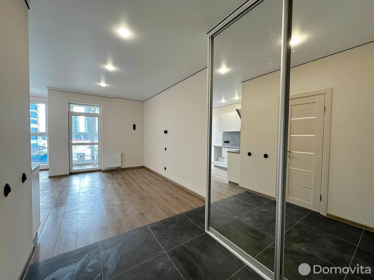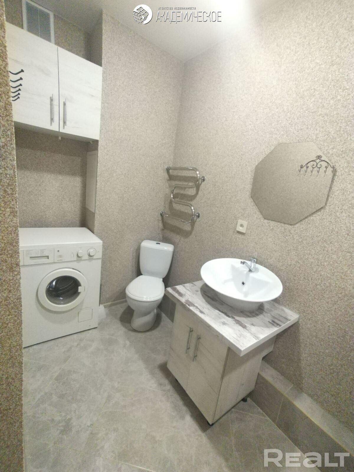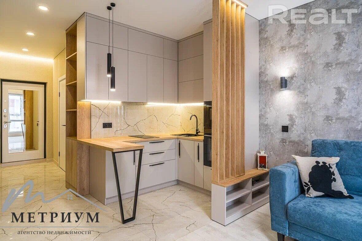 Следующая студия находится рядом с «Минск-Ареной». Вариант более просторный – общая площадь квартиры составляет 35 кв. м. Монолитный дом был построен в 2014 году, студия находится на 5-м этаже. В квартире проведен высокоскоростной интернет. Квартира укомплектована мебелью и техникой: кухня, телевизор, холодильник, стиральная машина, душ, шкаф-купе, металлическая дверь, застекленная лоджия. Для желающих имеется подземный паркинг. Санузел в студии совмещенный, есть лоджия, подключено видеонаблюдение. Продается квартира без посредников.
