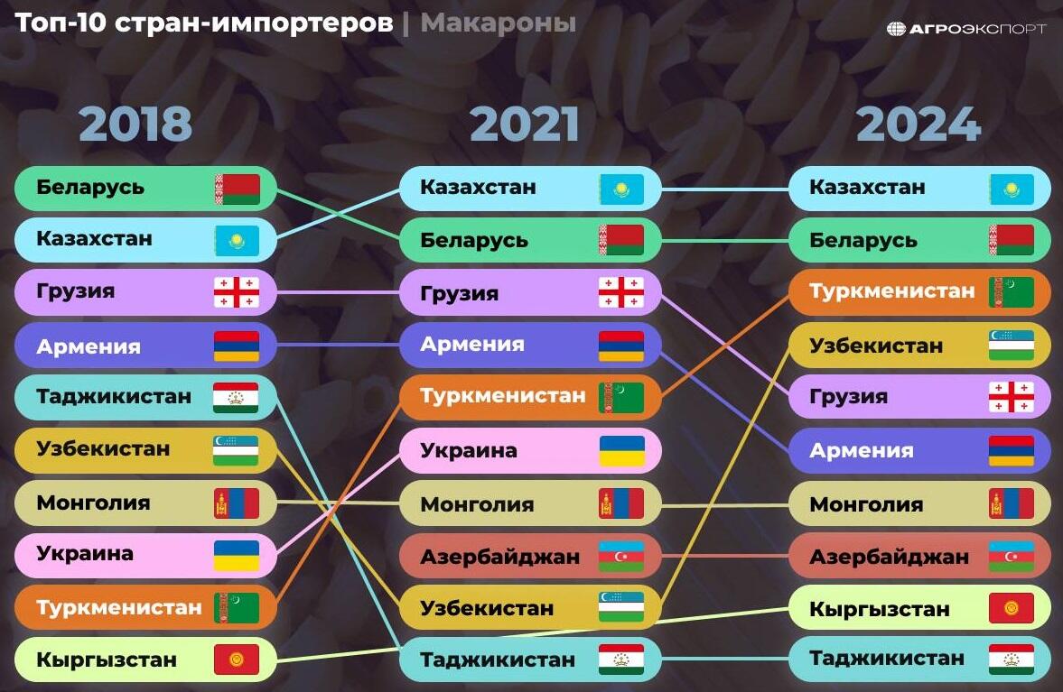 Как сообщает «Агроэкспорт», в 2024 году первое место в списке импортеров российских макаронных изделий досталось Казахстану.