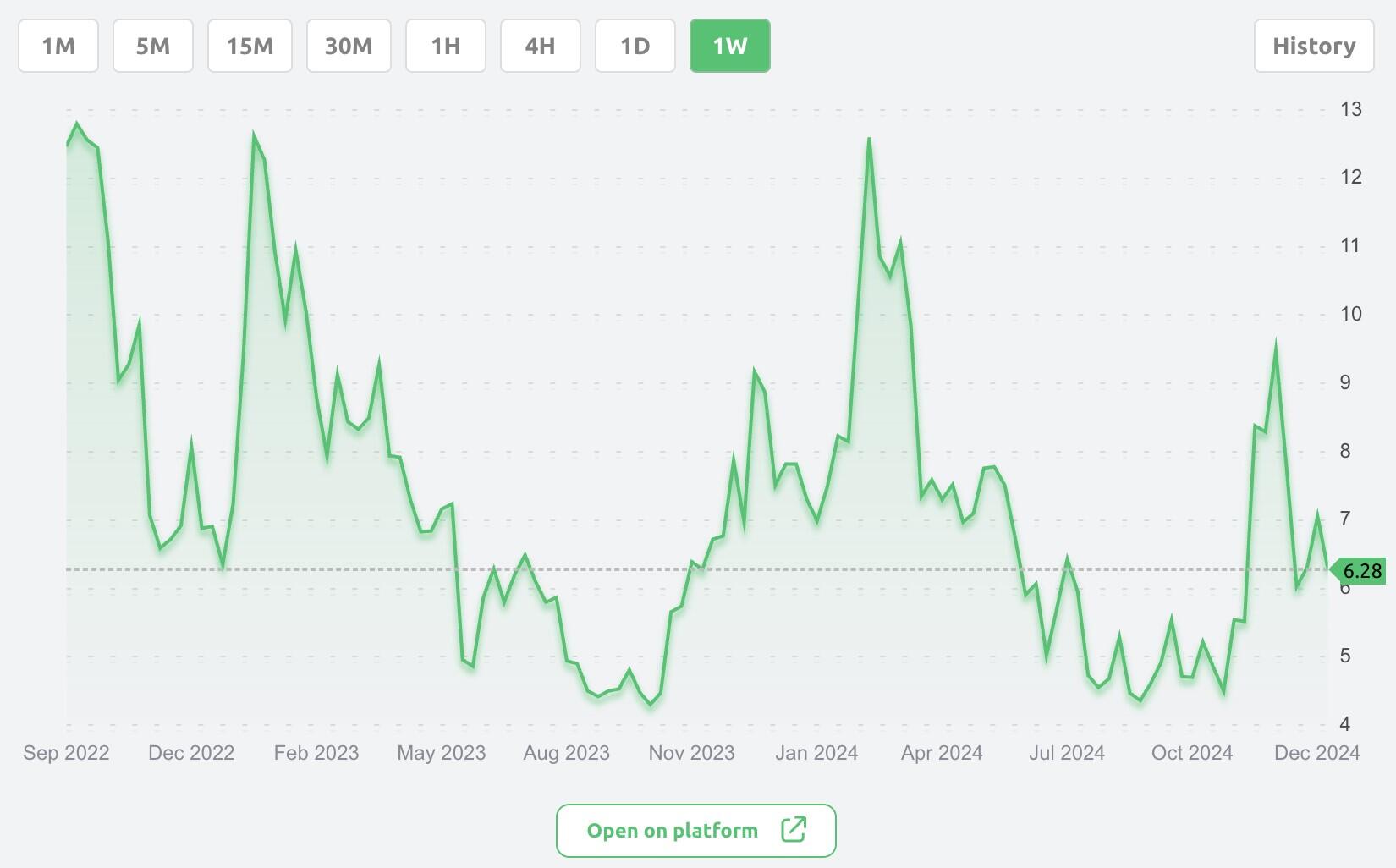 Динамика стоимости токена MANA на платформе Dzengi.com
