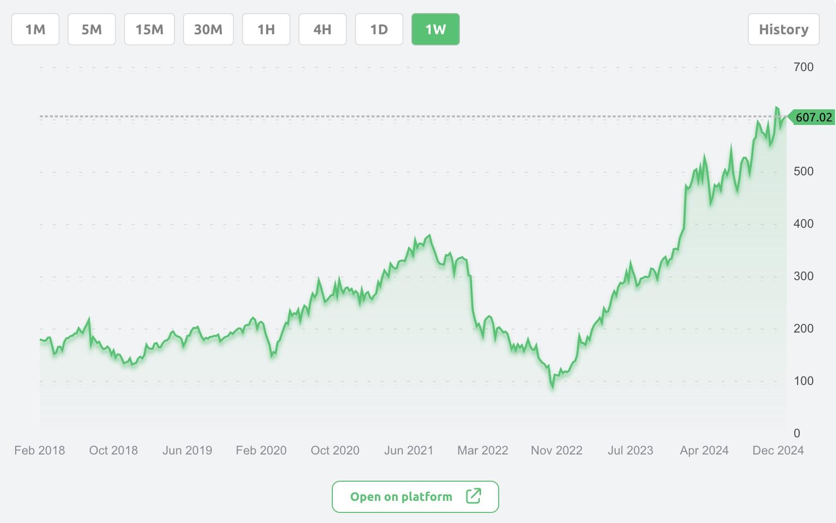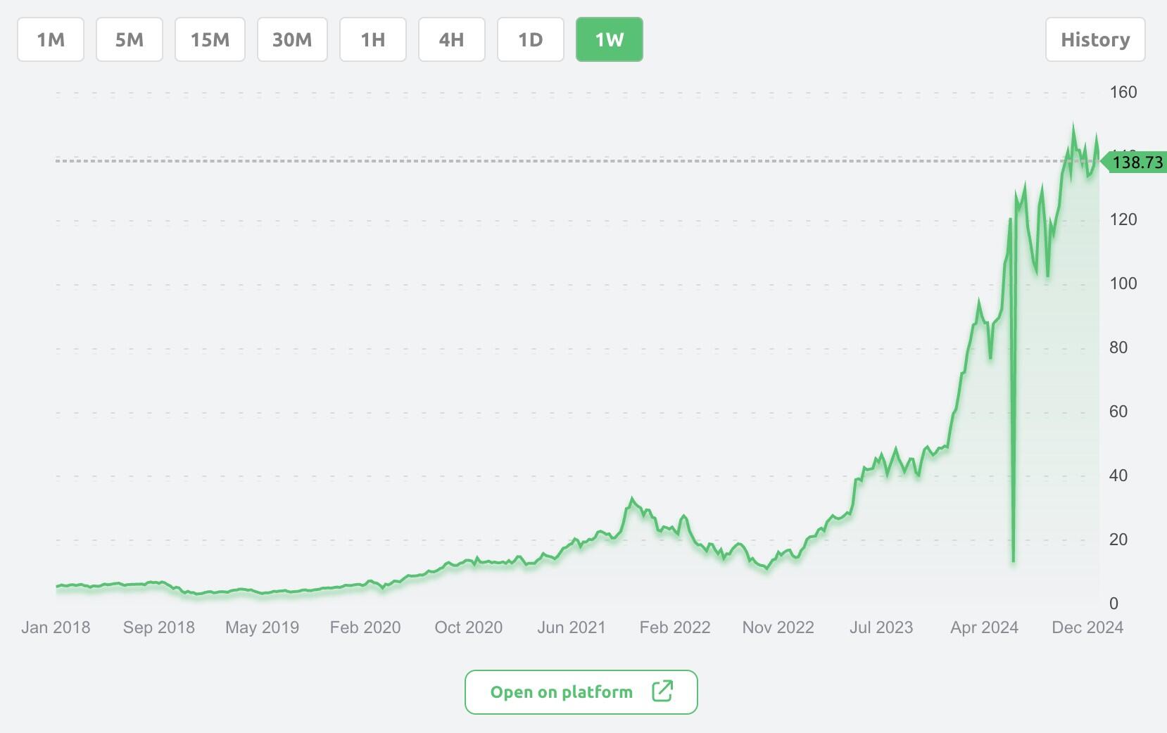 Динамика стоимости токенизированных акций NVIDIA на платформе Dzengi.com