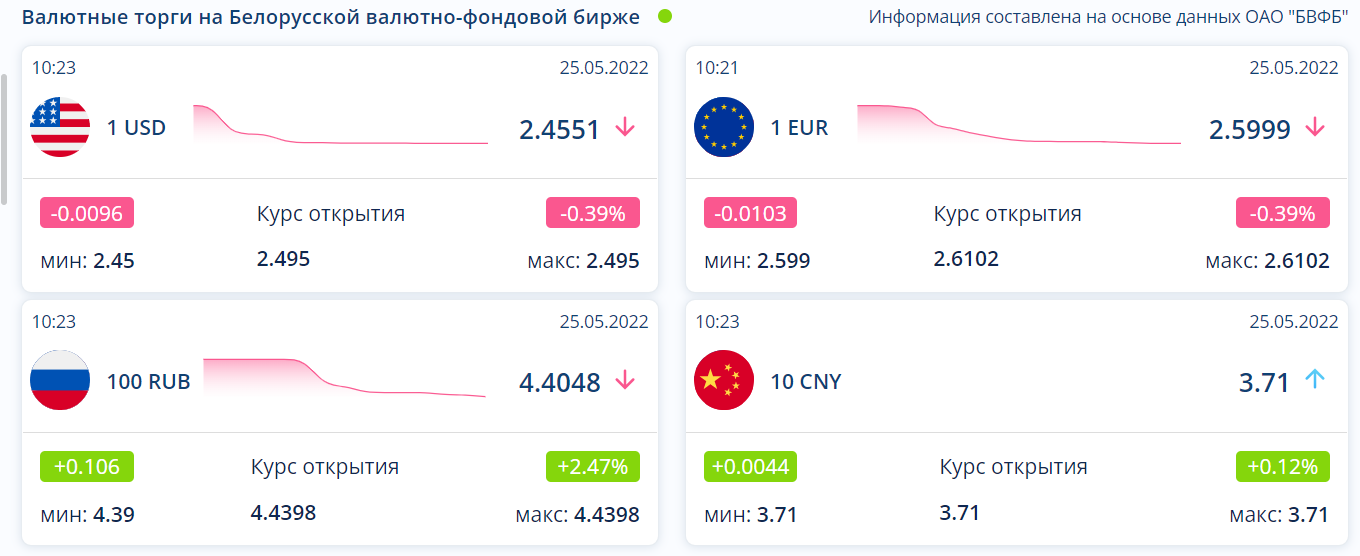 Котировки иностранных валют поставляются с ОАО «Белорусская валютно-фондовая биржа», обновление котировок поминутное.