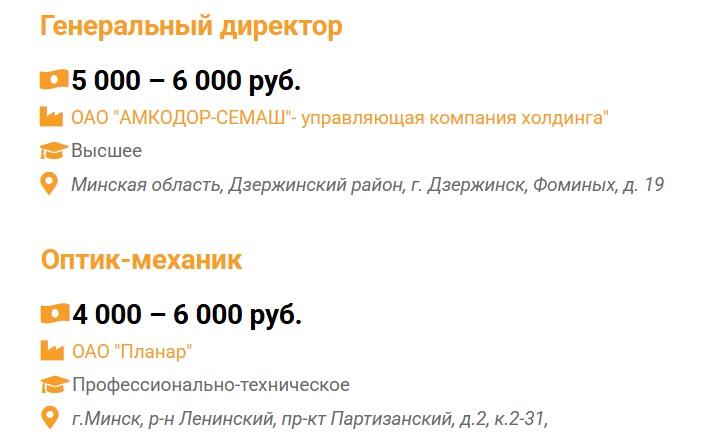 Заместитель генерального директора по с/х производству (ОАО «Лидахлебопродукт») может рассчитывать на 4000–6000 руб., заместитель директора офиса цифровизации (РУП «БЕЛТАМОЖСЕРВИС») – на 4330–6300 руб.