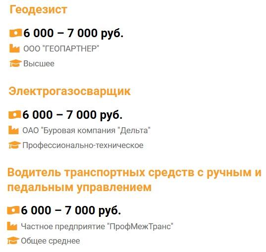 На сайте Государственной службы занятости опубликованы вакансии, зарплатное предложение по которым доходит до 7000 рублей.