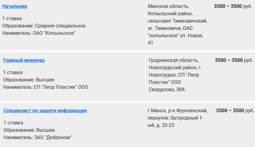 Зарплату в районе 3500 руб. обещают начальнику молочно-товарного комплекса, главному инженеру, специалисту по защите информации.