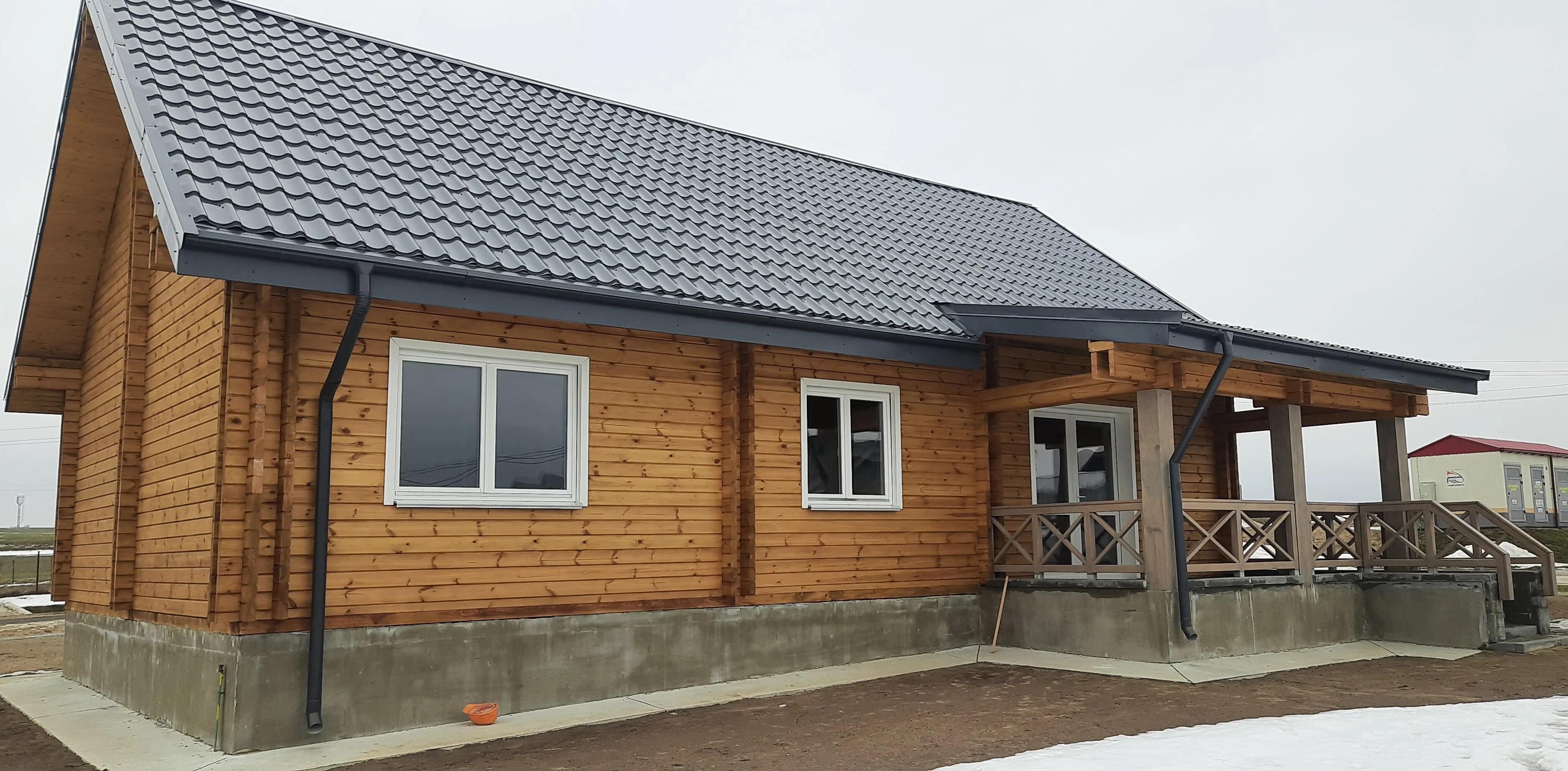 Есть продукция и за 27 600 руб. с общей площадью в 80 кв. м. Комплектация: сруб, стропильная система, лаги, балки, обрешетка, доска пола и террасы, подшивка потолка и террасы.