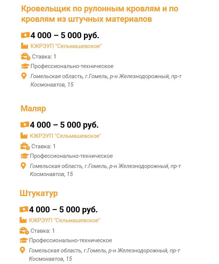 Некоторые предприятия готовы взять работников с общим средним образованием на зарплату в районе 4000 рублей. В частности, нужны шевинговальщик (Минский моторный завод) и водитель грузового автомобиля (ООО «Фуд Система»).