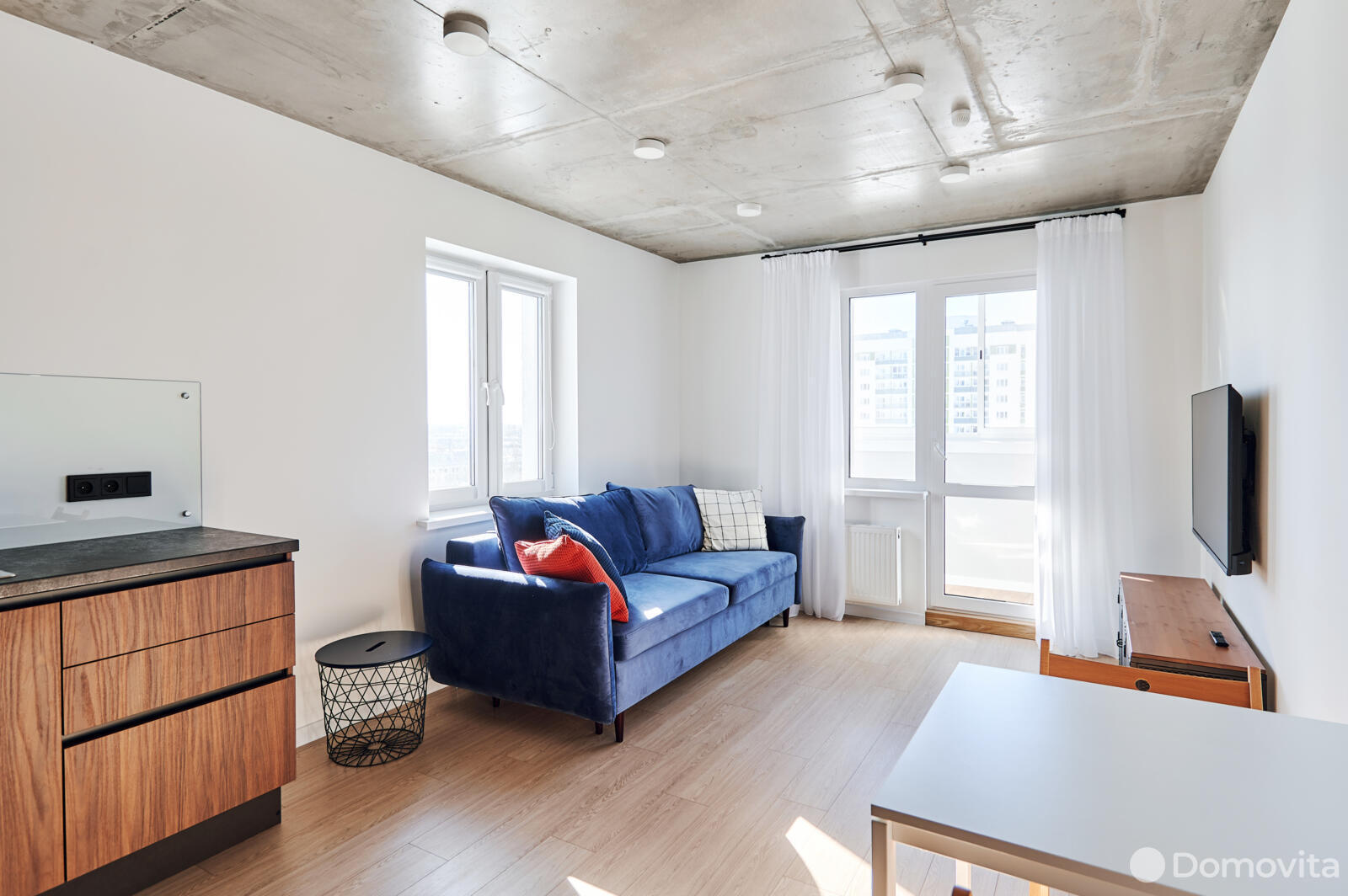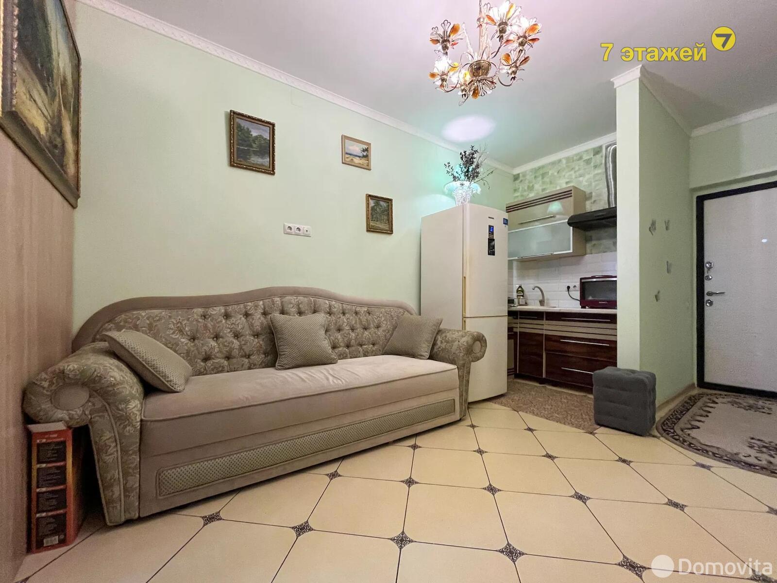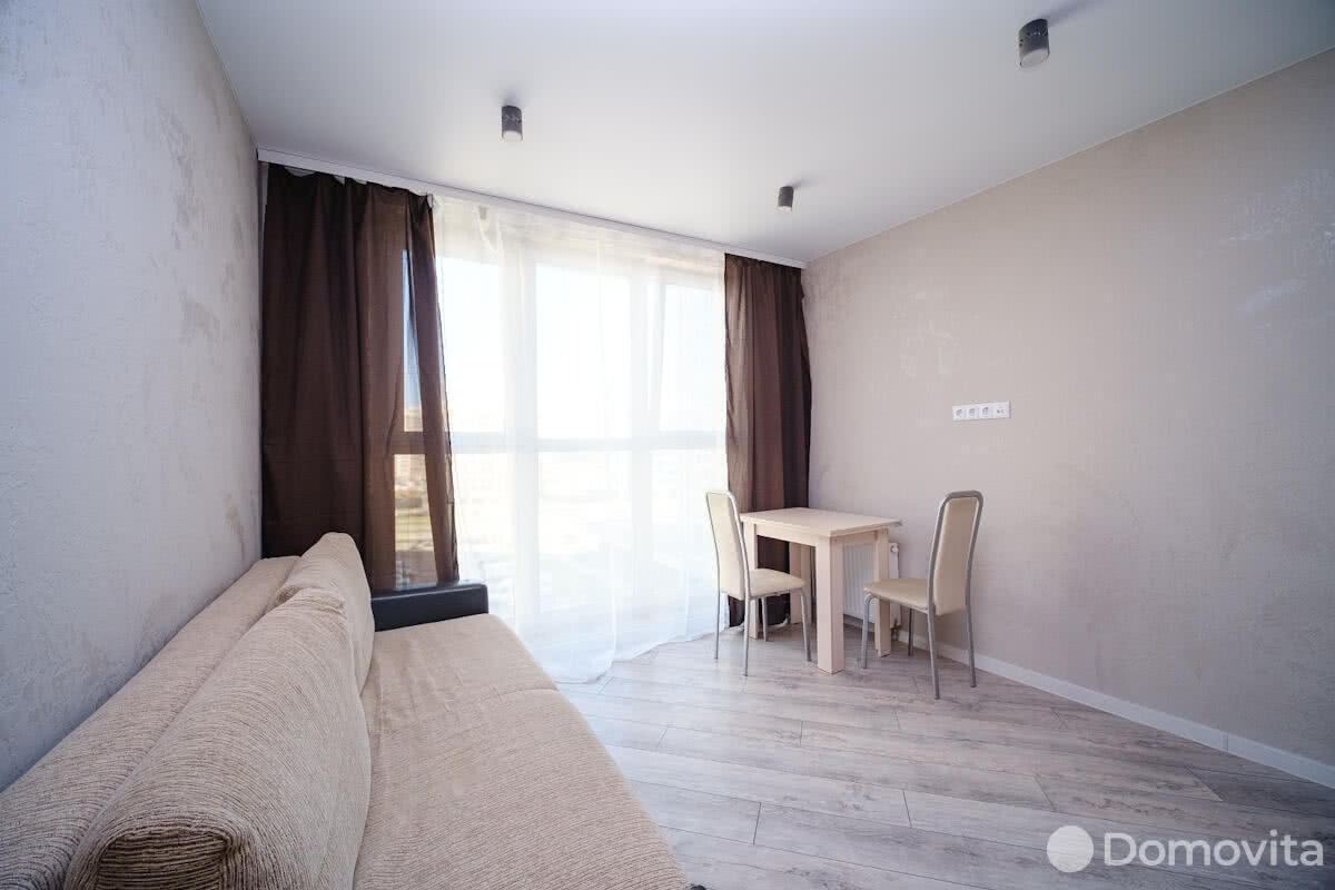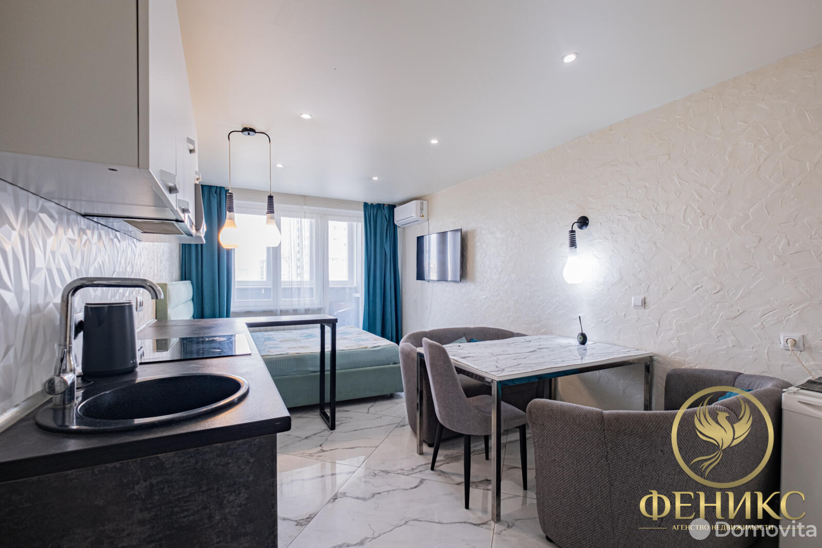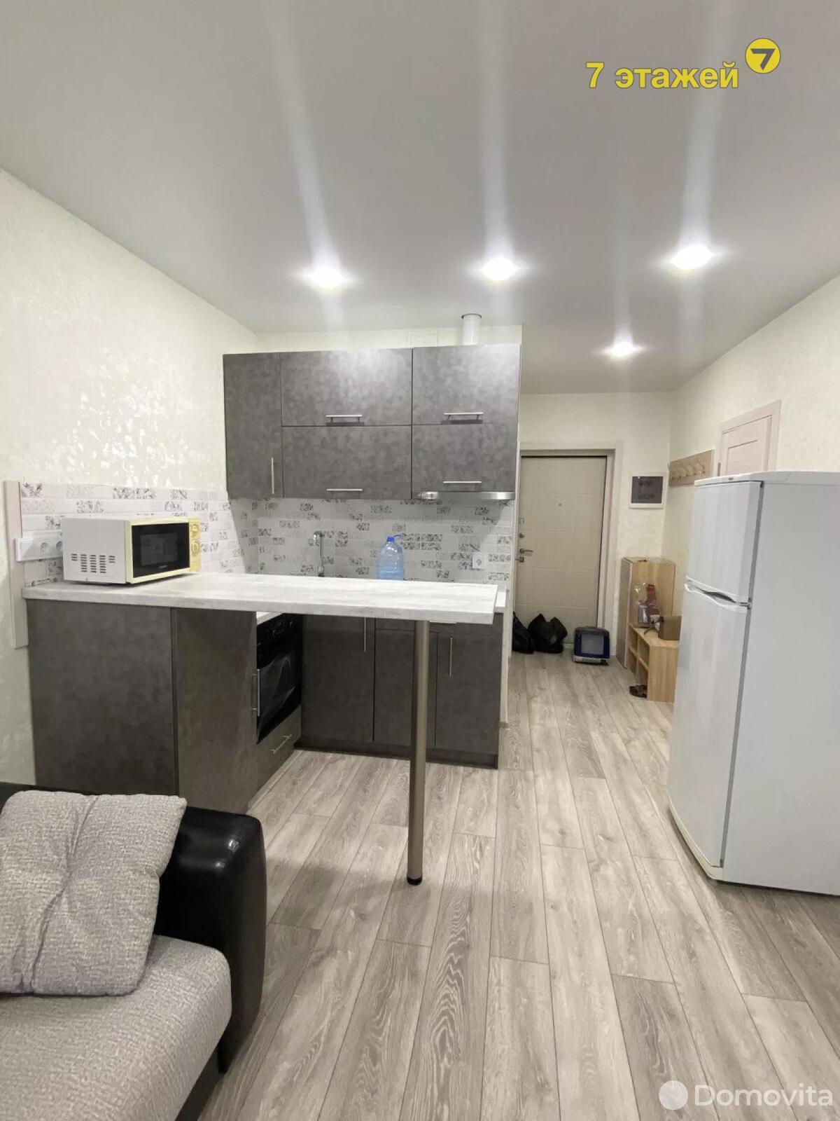 Небольшую студию можно найти не только в «Минск Мире». Мы отыскали такой вариант в Московском районе в жилом комплексе «Минский квартал». Находится жилье на 12 этаже в новом доме, построенном в 2022 году. В квартире есть лоджия, санузел совмещенный. Общая площадь студии составляет 26,8 кв. м.