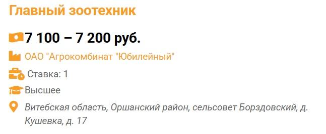 ОАО «Агрокомбинат «Юбилейный» нужен главный зоотехник. Платить обещают 7100–7200 руб.