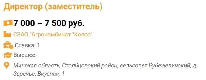 Заместителя директора по экономике и финансам ищет СЗАО «Агрокомбинат «Колос». Зарплатное предложение – 7000–7500 руб.