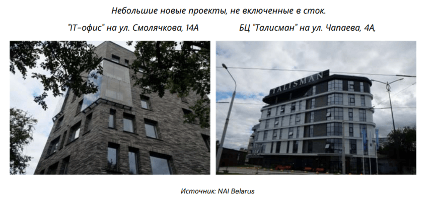Довольно активно ведется строительство МФК на пр-те Победителей в р-не Дворца тенниса. В комплексе вместе с торгово-сервисными площадями предусмотрено размещение офисов. Концептуально схожий проект реализуется и в проекте ЖК «Левада», где в комплексе с торговыми помещениями и паркингом предусмотрено возведение бизнес-центра. В обоих этих проектах будет приблизительно по 10 тыс. кв. м офисной площади. Также ожидается завершение до конца 2023 года проекта МФК Prizma на проспекте Партизанском, в составе которого предусмотрено порядка 14,5 тыс. кв. м офисов.