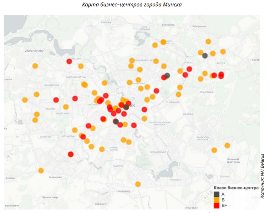 Инфраструктура современной офисной недвижимости г. Минска по состоянию на конец 2022