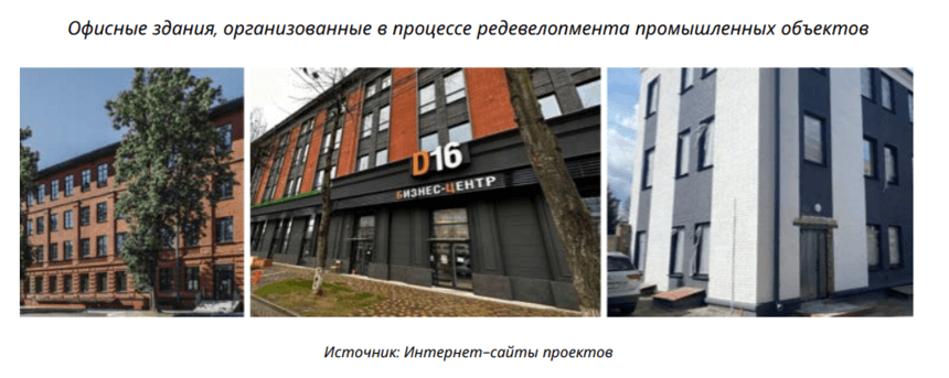 Был реализован ряд проектов по регенерации старых промышленных и административных зданий под офисные объекты, как правило, в стиле «лофт». Среди завершенных объектов такого типа можно отметить бизнес-центры D16 (ул. Долгобродская, 16) от компании «Платина Групп»; на ул. Захарова, 42 и новые здания в проекте Бизнес-квартал New Place, реализуемые компанией «Белтяжмаш».