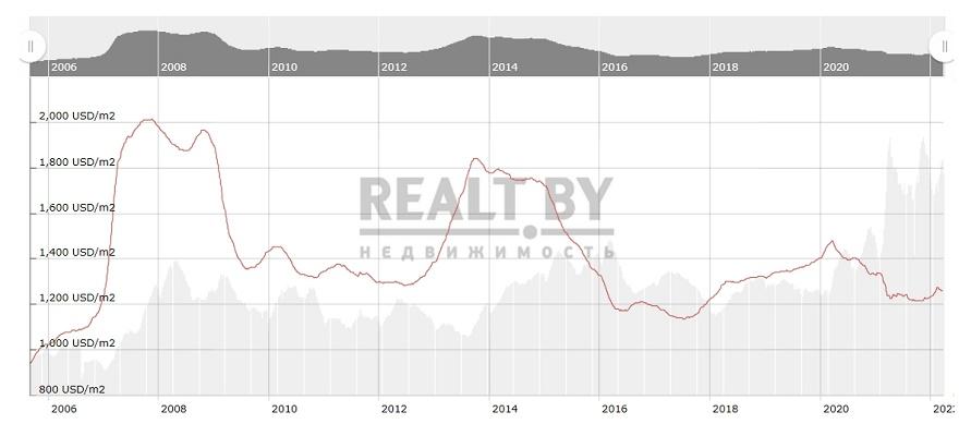 С августа 2020 долларовые цены только снижались и сейчас средняя стоимость составляет $1250-1300 за квадратный метр. И если квадрат потеряет в цене еще $100, то можно считать, что на рынке практически не останется квартир, которые купили дешевле, чем продают.