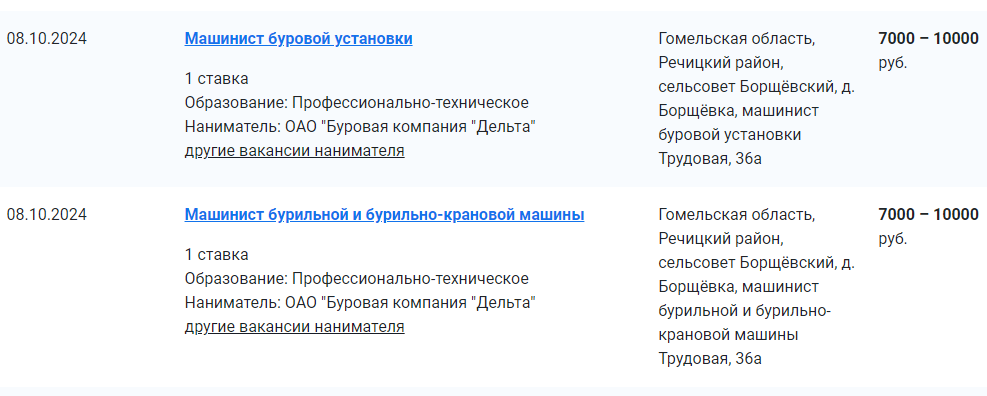 Нанимателем выступает открытое акционерное общество «Буровая компания «Дельта» (д. Борщевка, Речицкий р-н, Гомельская обл.).