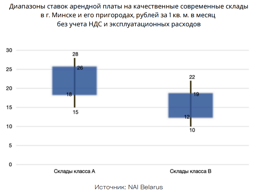 Качественные склады класса «А» уже достигли ставок в 26-28 рублей за 1 кв. м. без НДС. Это в привычном некогда еврономинале 7,5-7,8. Не на много отстают и качественные представители класса «В». Там стоимость аренды достигла 20-22 рублей за 1 кв. м: ставки совсем не низкие.