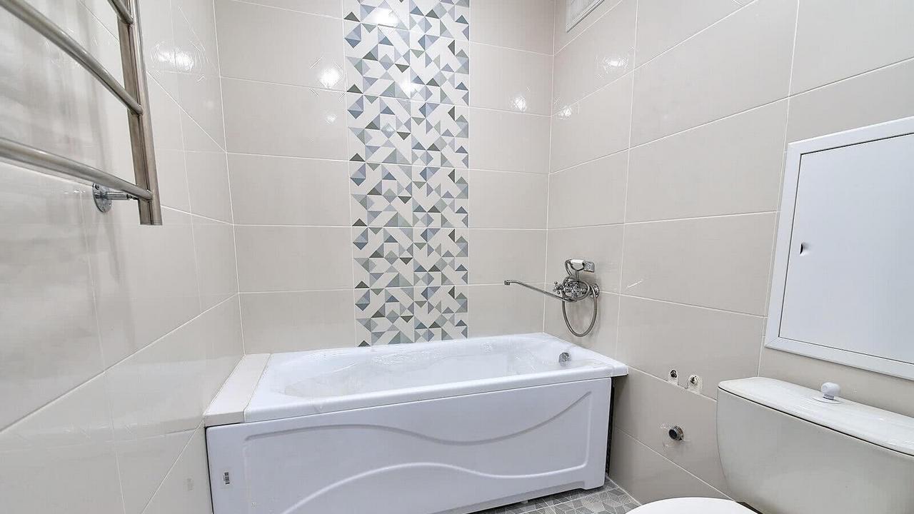 Дом находится примерно в 13 минутах от метро, но недалеко есть автобусная остановка. В квартире свежий ремонт: облицованный плиткой санузел, новая ванна и сантехника, в комнате поклеены обои и уложен ламинат.