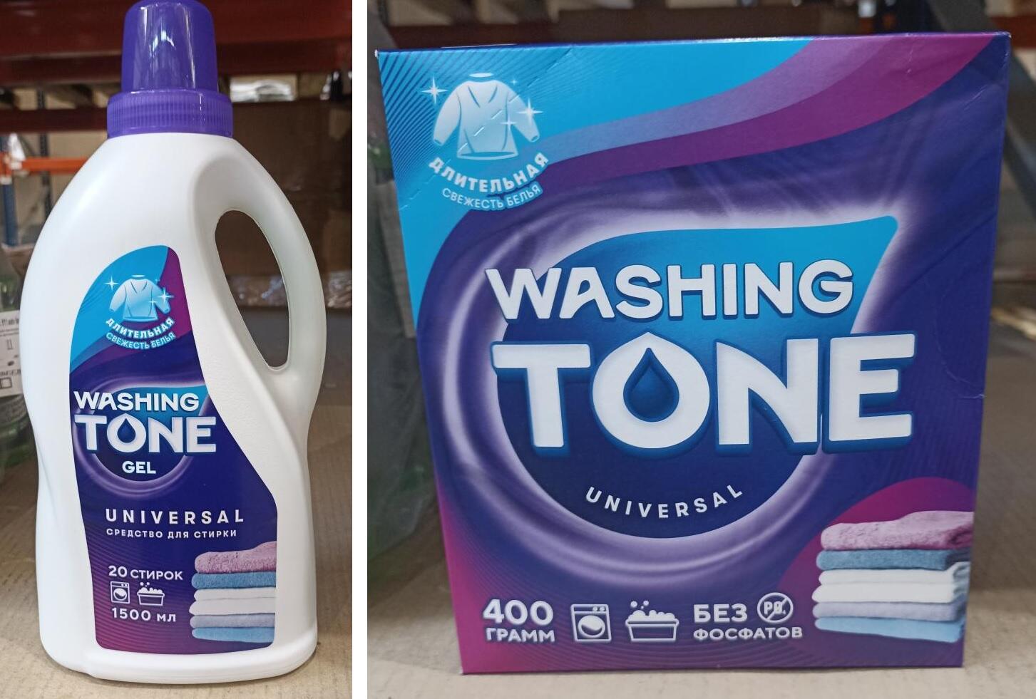 Под запрет попали средство для стирки жидкое Washing Tone «Универсальное Гель» и средство моющее синтетическое порошкообразное Washing Tone «Универсал Автомат». Производитель продукции – ООО «Сэльвин-Про» (Беларусь, г. Могилев).