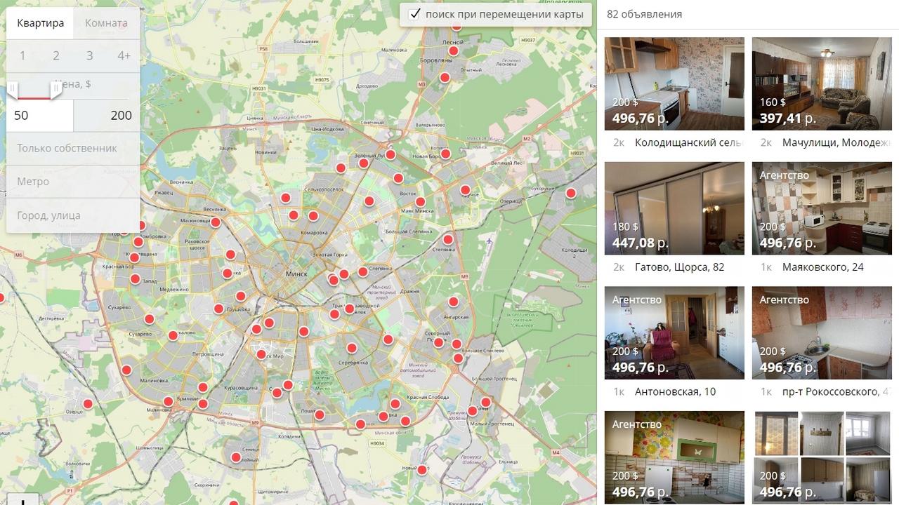 Цены на аренду, к слову, остались прежними. Например, сегодня легко можно найти квартиры до $200 за месяц. Таких вариантов больше 100 на разных площадках. А по структуре предложений достаточно и от агентств, и от собственников.