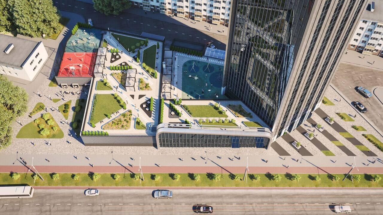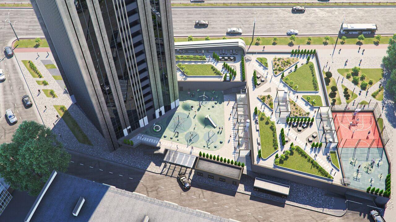 В административной части планируется открыть медицинский центр, отделение банка и торговые объекты шаговой доступности.