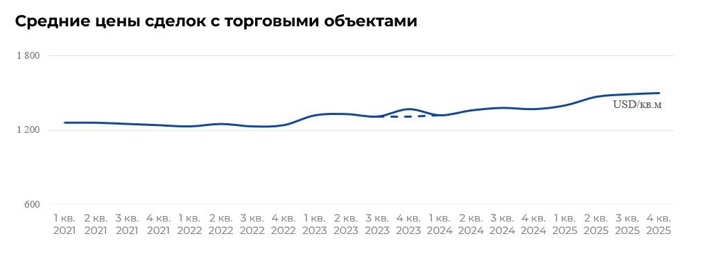 В столице основу рынка формируют торговая и офисная недвижимость. В 2025 году средняя цена сделок с торговыми объектами стабильно росла благодаря увеличению доли стрит-ритейла в новых жилых комплексах – «Минск Мир» и «Маяк Минска».