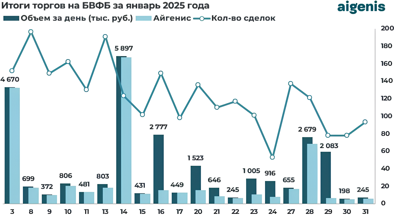 В январе 2025 года объем торгов корпоративными облигациями на площадке Белорусской валютно-фондовой биржи снизился на 10% по сравнению с декабрем 2024 года и составил 27,579 млн рублей. Количество заключенных сделок выросло на 5% и достигло рекордного значения в 2 476. Это стало новым историческим максимумом за всю историю биржевых торгов и говорит о растущем интересе розничных инвесторов к корпоративным ценным бумагам, комментируют аналитики инвестиционной компании «Айгенис».