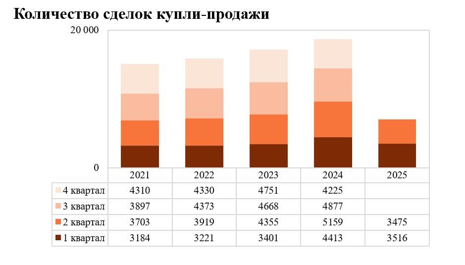 По данным Госкомимущества, во II квартале 2025 года на столичном рынке жилой недвижимости заключено почти 3,5 тыс. сделок купли-продажи.