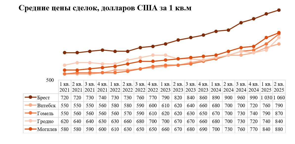 Среди областных центров ситуация оказалась неоднозначной. Только Брест показал рост количества сделок (+57), тогда как в других городах зафиксировано снижение, особенно заметное в Гродно (-409 сделок).
