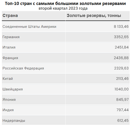 В глобальном рейтинге стран по количеству золотых запасов первая десятка лидеров осталась прежней (по итогам апреля – июня 2023 года). Однако по сравнению с предыдущим отчетным периодом объем резервов у некоторых стран изменился.