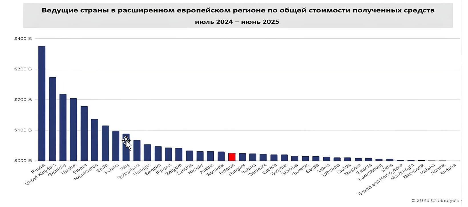 Десять крупнейших рынков охватывают всю Европу, демонстрируя широкое распространение криптовалют в регионе. В период с июля 2024 года по июнь 2025 года Россия стала доминирующим рынком криптовалют, получив $376,3 млрд, значительно опередив Великобританию (273,2 млрд $). Разрыв между Россией и Великобританией – традиционно ведущими рынками региона – заметно увеличился по сравнению с предыдущими годами. При этом разница в объемах между Великобританией и другими крупными рынками, такими как Германия (219,4 млрд $), Украина (206,3 млрд $) и Франция (180,1 млрд $), значительно сократилась, что свидетельствует о том, что ранее небольшие рынки теперь достигают сопоставимого уровня криптовалютной активности.