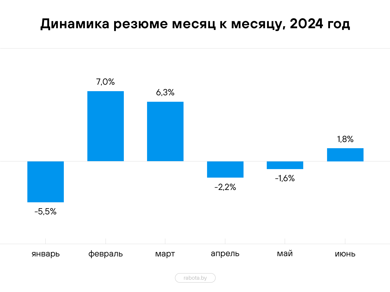 Соискатели не спешили искать новую работу, и это отразилось на количестве активных резюме. Лишь в июне отметилась положительная динамика на уровне 1,8%.