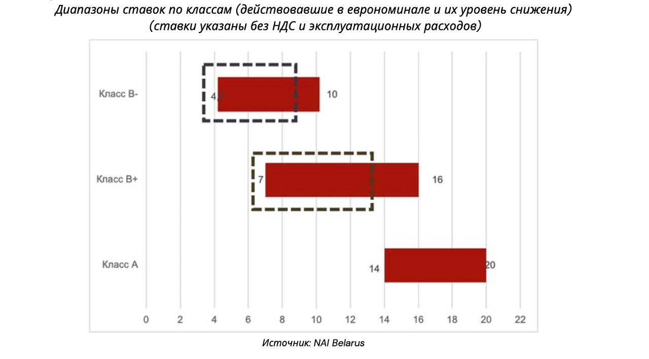 – Процесс снижения ставок и ценовых «притирок» к изменяющейся конъюнктуре длился больше года, но в итоге остановился. Исключением остался класс А. Здесь ценовая ситуация более стабильная. Даже в этот сложный период заключались договоры аренды по ставкам в 15-20 евро в эквиваленте без НДС, а по старым договорам без пересмотра продолжают действовать ставки и до 25 евро.