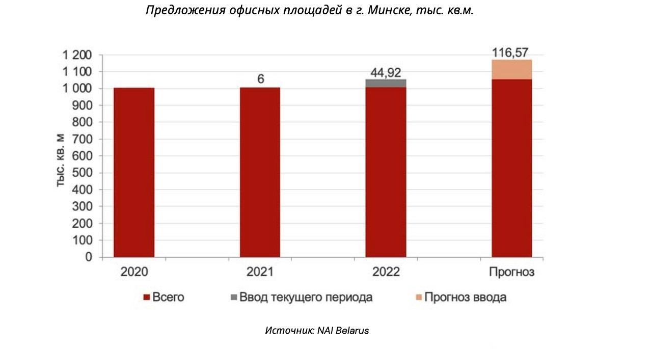 К концу 2022 года предложение новых офисов в Минске достигло практически 45 тысяч кв. метров.