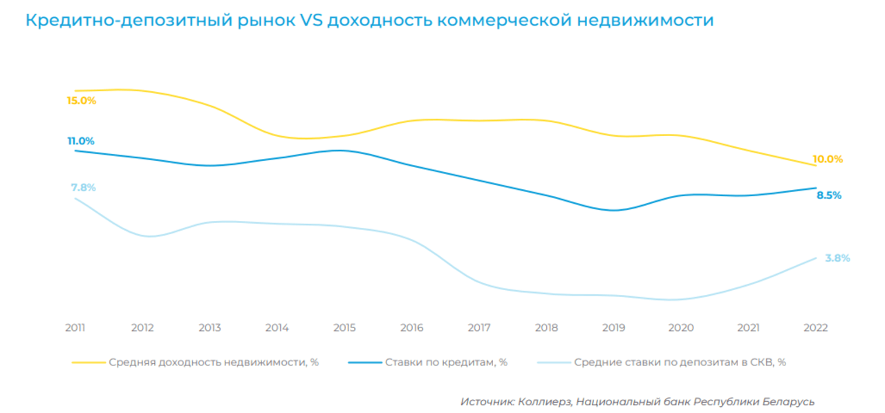 Нельзя не отметить отсутствие на рынке коммерческой недвижимости профильных игроков в виде инвестиционных фондов недвижимости. Подобные финансовые институты активно развиваются во всех странах-соседях, включая Украину и Российскую Федерацию. При этом действующее законодательство в Республике Беларусь позволяет создавать фонды, но не способствует развитию специализированных фондов. В частности, одно из ограничений – недвижимость может составлять не более 50% портфеля паевого фонда.