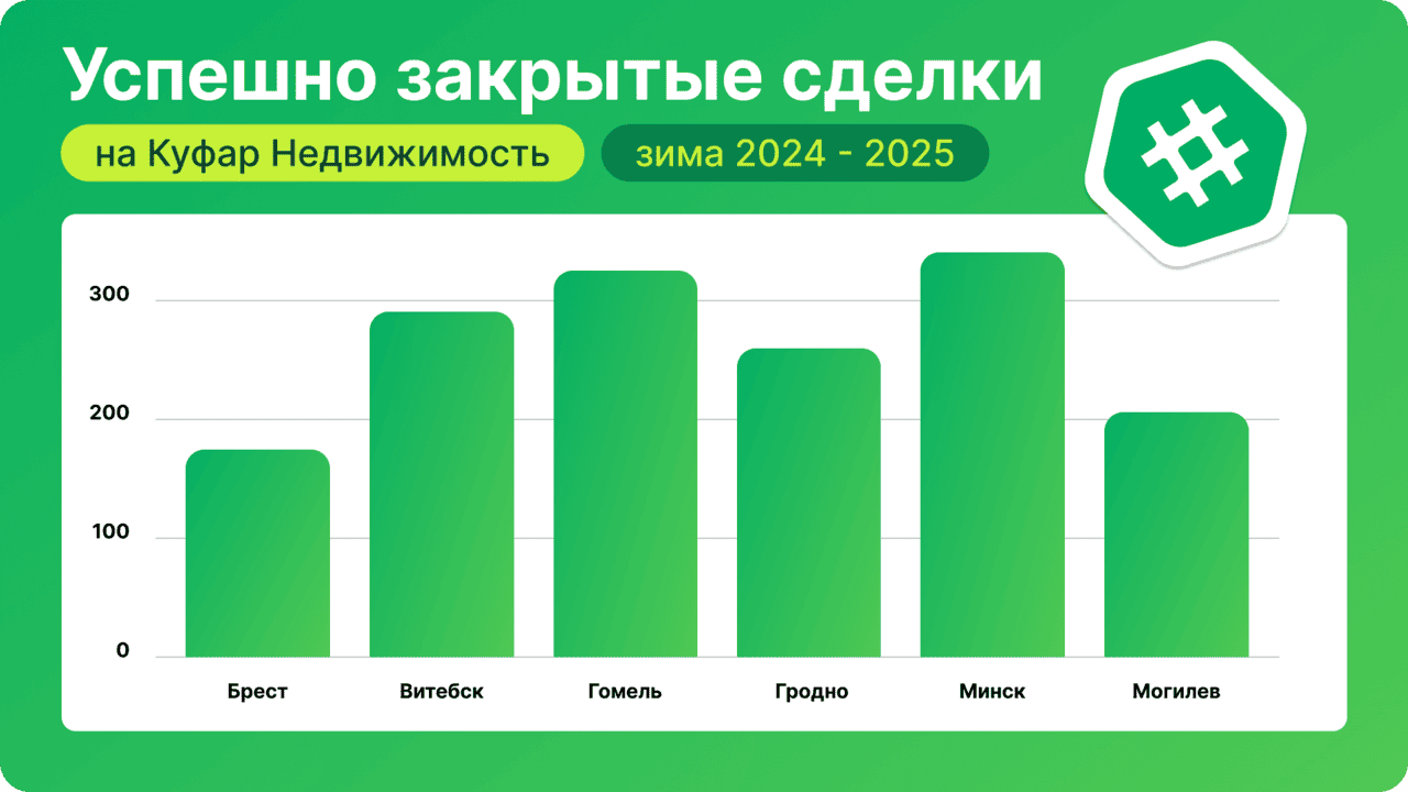 Зима традиционно считается периодом затишья на рынке недвижимости, когда покупатели выжидают, а продавцы не спешат снижать цены. Однако прошедшие три месяца показали, что интерес к покупке жилья сохраняется, особенно в крупных городах. Всего в областных центрах Беларуси было успешно закрыто более 1 700 сделок на Куфар Недвижимость. Из них 20% пришлось на столицу. Можно говорить об активности рынка даже в холодный сезон.