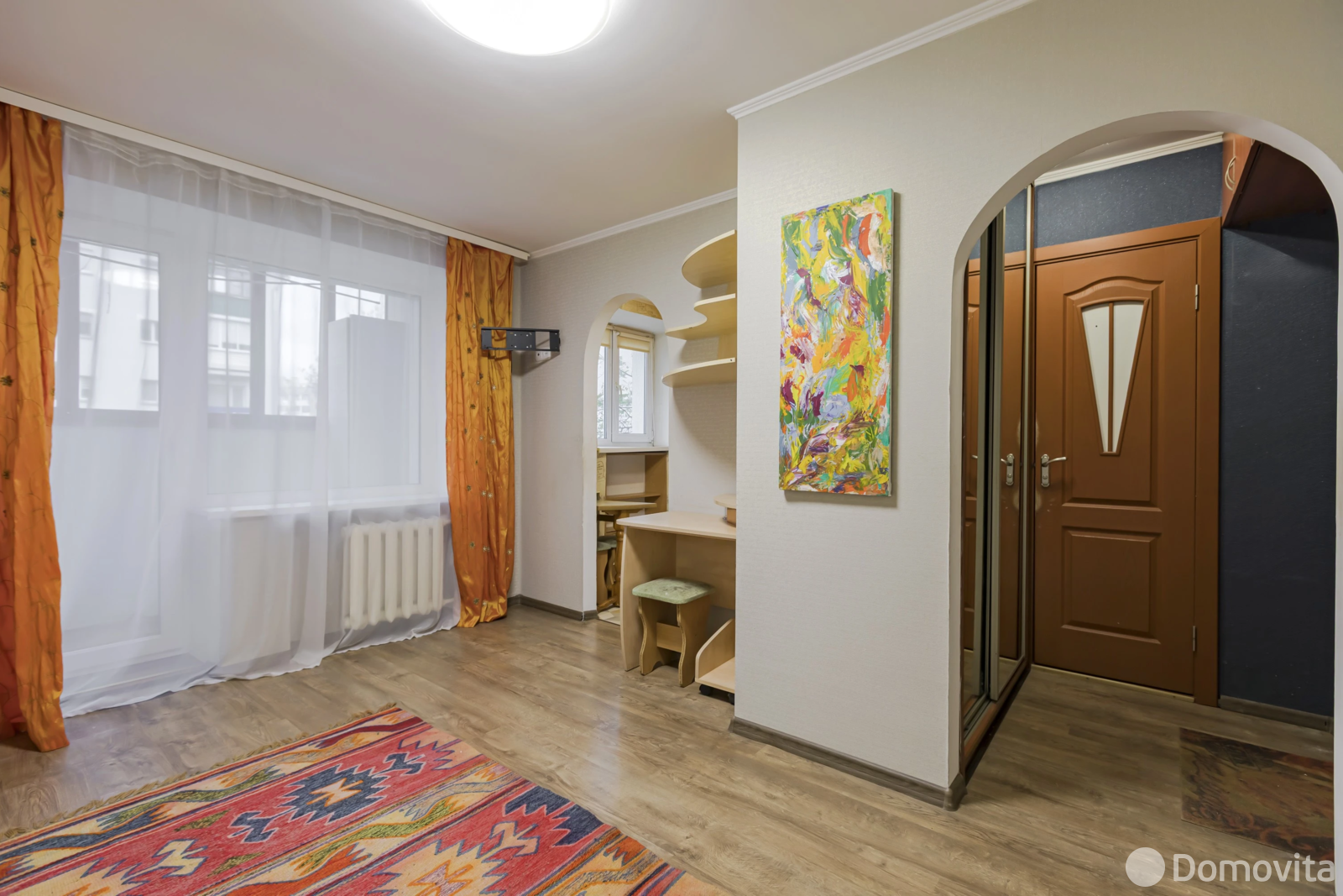 Квартира в жилом состоянии. Есть лоджия, санузел раздельный. В стоимость уже включен кухонный гарнитур, шкаф-купе, стенка и холодильник. В шаговой доступности расположены магазины, поликлиника, школа и детский сад. В 10 минутах езды — станция метро «Могилевская» .