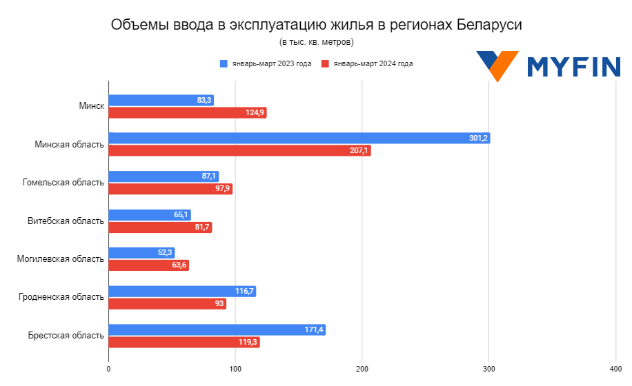 Хотя в целом по Беларуси в январе-марте объемы введенного в эксплуатацию жилья были меньше, чем в I квартале 2023 года, в Минске и нескольких областях показатели ощутимо выросли.