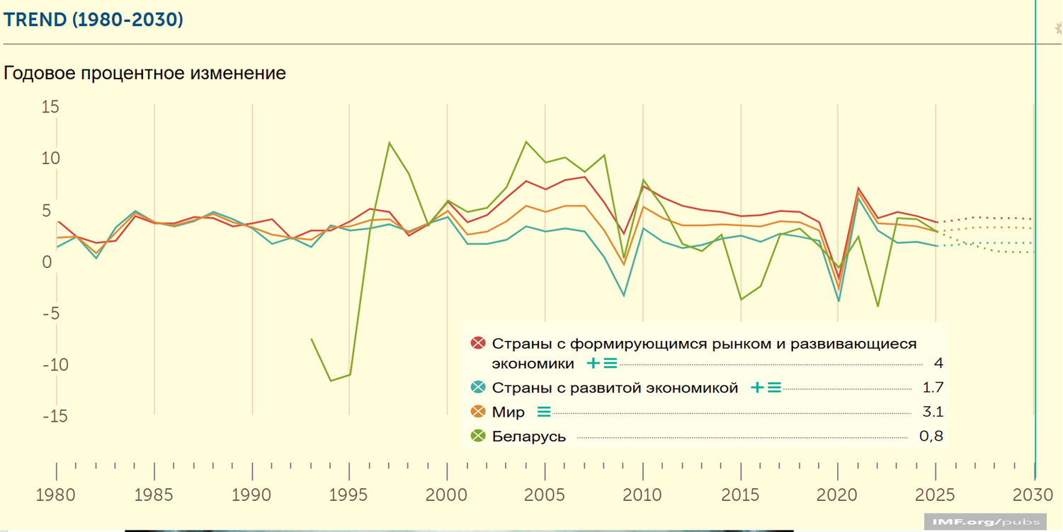 В то же время МВФ повысил прогноз роста белорусской экономики на текущий год с 2,3 до 2,8 %, но в следующем году ожидает лишь 2 %. Также прогноз инфляции установлен 5,5 % в этом году и 5,8 % в 2026-м. Напомним, указом № 384 на этот год запланирован рост экономики на 4,1 % и инфляция не более 5 %.
