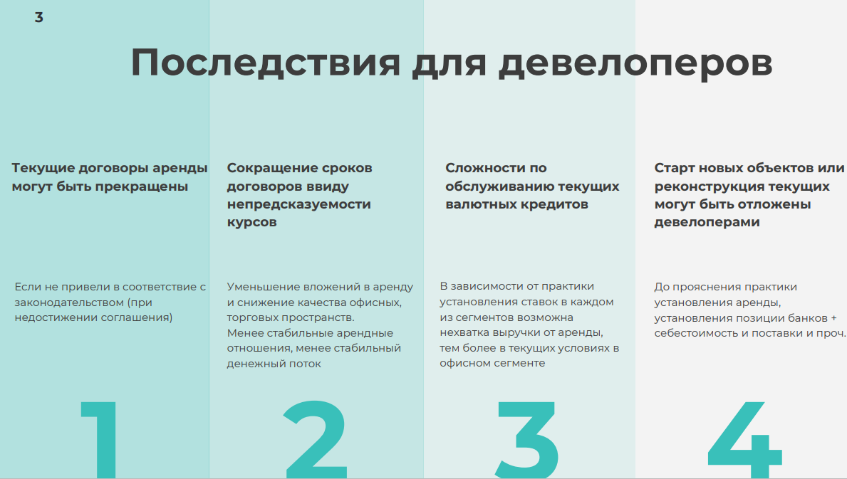 Он резюмировал анализ ситуации тремя пунктами (главными последствиями для девелоперов):