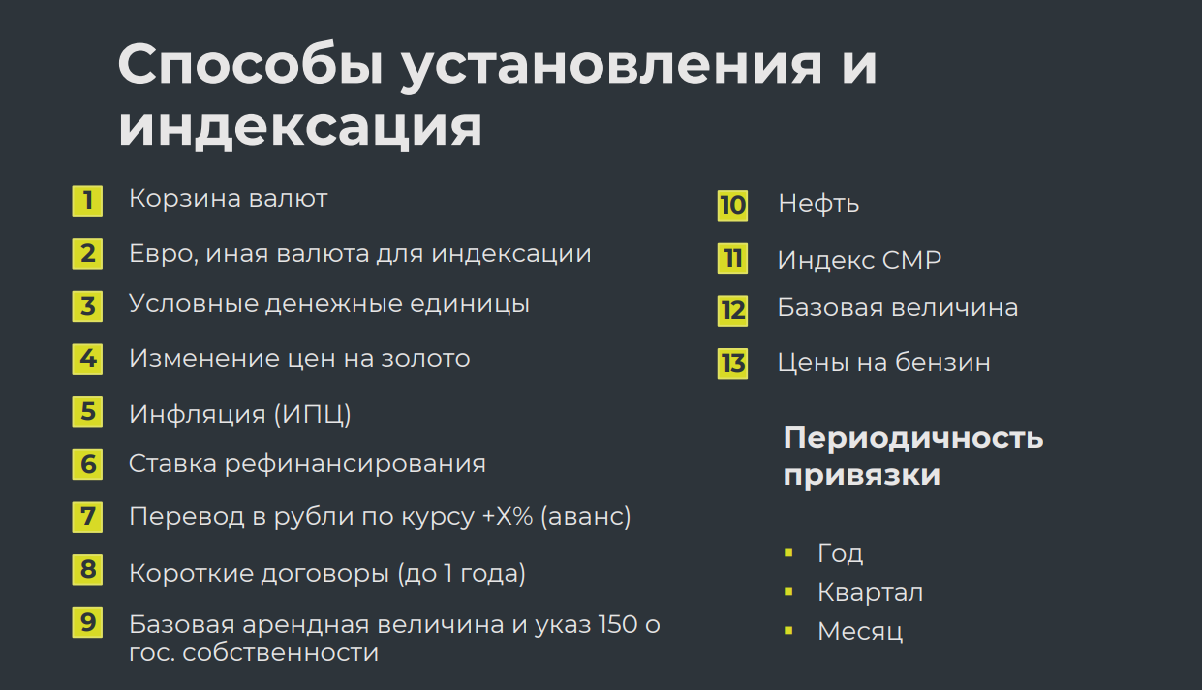 День 18 июля 2022 года для участников рынка коммерческой недвижимости стал революционным. Закон № 197-З «Об изменении законов по вопросам рынка ценных бумаг» приостановил возможность номинировать ставки аренды в иностранной валюте. Эта ситуация заставляет искать новые способы определения и индексации ставок аренды.