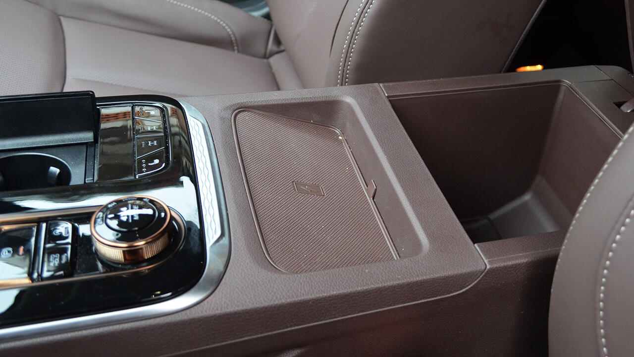 По эргономике также без особых претензий: все элементы управления на своих местах – там, где они должны быть. Рычаг переключения режимов трансмиссии не выпадает из общего стиля и удобен в использовании. Рулевая колонка регулируется по уровню наклона, мультируль руль с подогревом. В наличии USB-порт и 12-вольтовое гнездо в нижней части парящей центральной консоли, кнопка системы «Глонасс» площадка для беспроводной зарядки смартфона, большой ящик в подлокотнике, вместительный «бардачок».