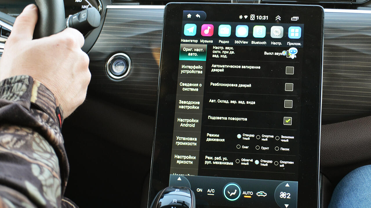 Что касается мультимедиа, то это полнофункциональный планшет на Андроиде, в который, помимо функций собственно планшета, зашито управление ездовыми режимами, усилением руля, системой климат-контроля и немногочисленными настройками ряда других функций – здесь точно не запутаешься.