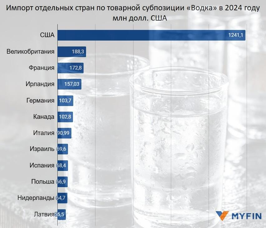 В 2023 году США потратили на закупку водки около $1,22 млрд, а в 2024 году – $1,24 млрд. Основными поставщиками крепкого алкоголя на американский рынок были Нидерланды, Франция, Швеция, Латвия, Польша.