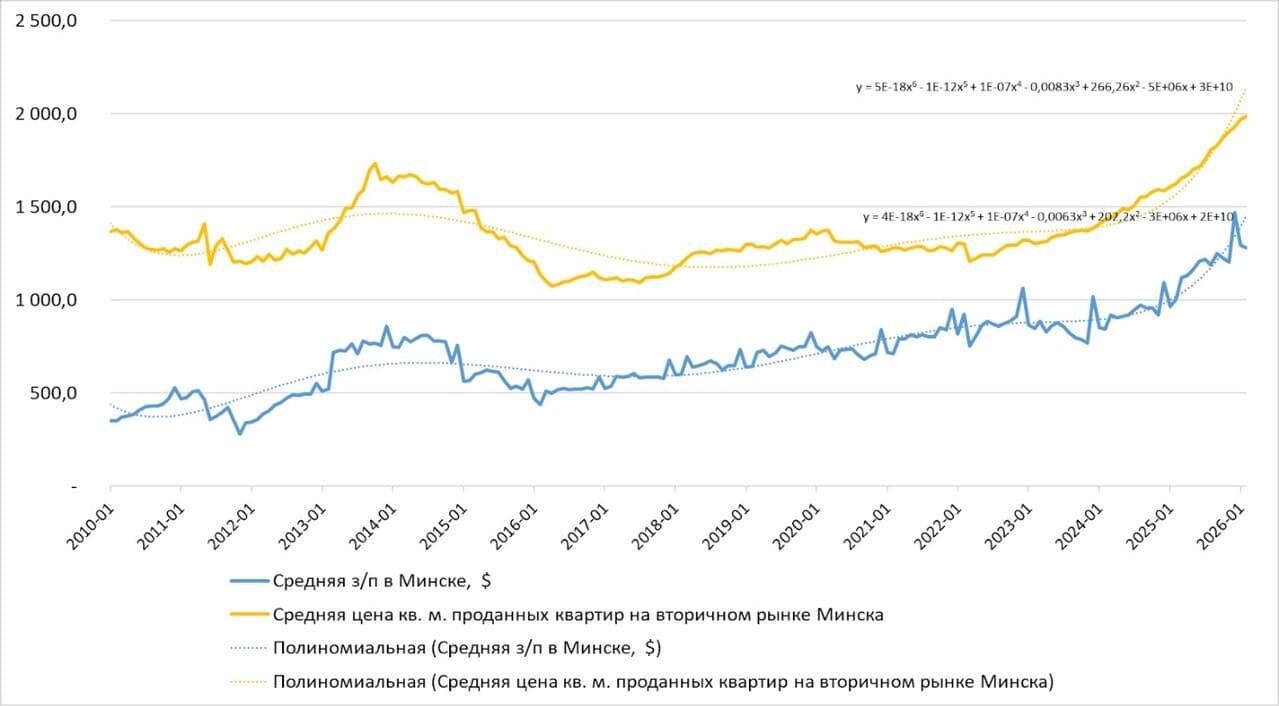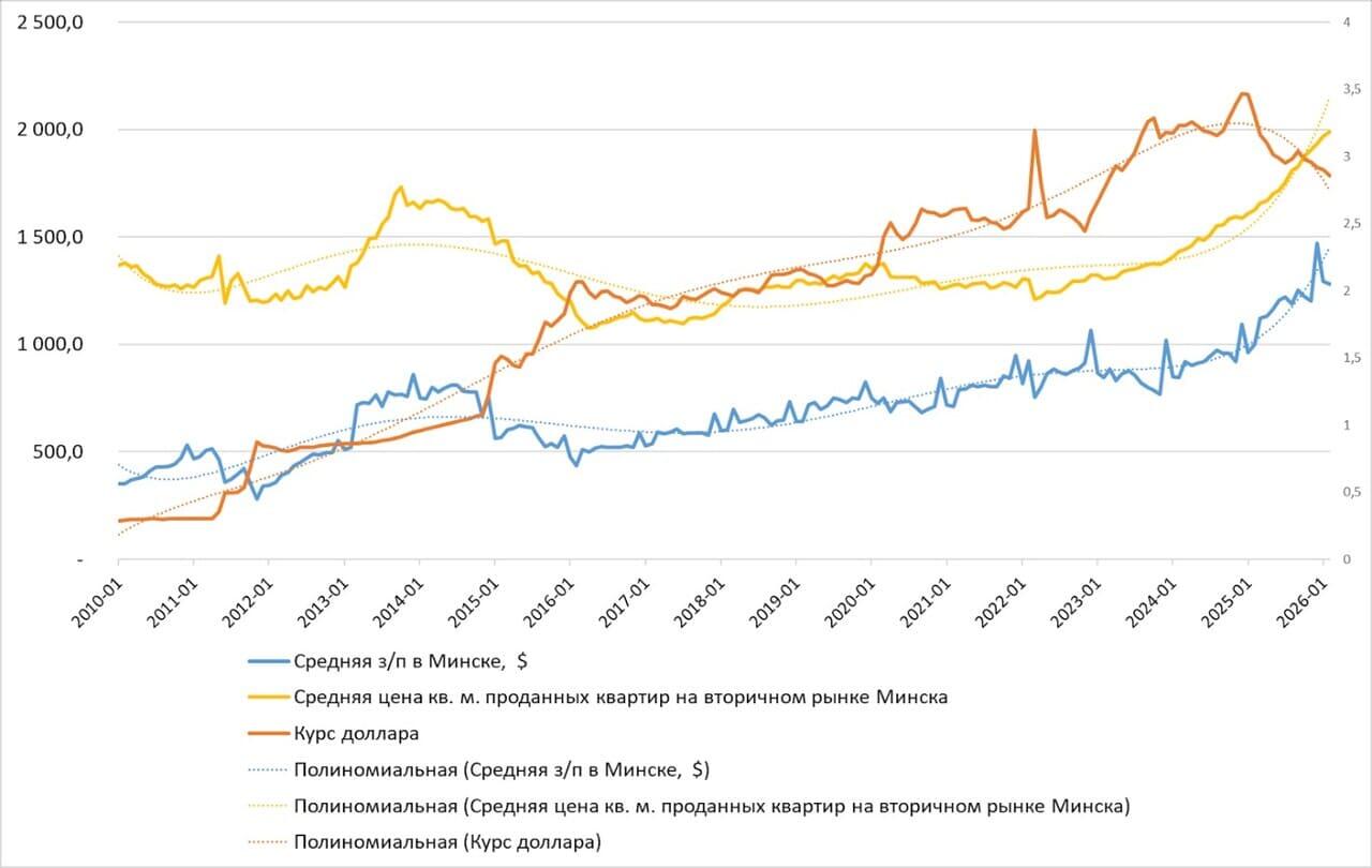 Учитывая профиль вашего ресурса, можем начать с макроэкономики рынка недвижимости. Мы собрали некоторые цифры за последние 30 лет (наличие своего отдела аналитики позволяет это делать), они как минимум заставляют задуматься. Итак, официальная средняя зарплата в Беларуси выросла с 95 долларов в 1996 году до 1281 доллара в 2026-м (в 13,5 раза).
