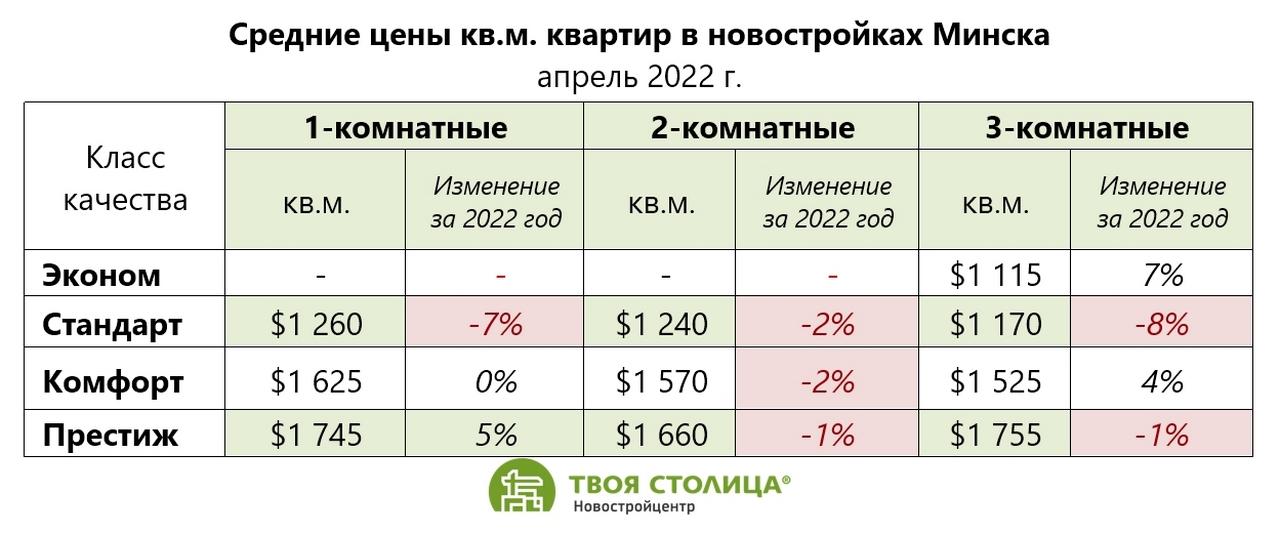 - Оптимистичный предусматривает, что курс доллара будет балансировать на отметке 2,8-2,9 BYN, но не выше 3-х BYN, завершатся боевые действия, а санкции не будут расширены. В этом случае к концу года рынок полностью стабилизируется в части спроса. При сохранении подобных тенденций будет наблюдаться усредненный для Минска спрос. Однако рассчитывать на рост цен причин не будет – при таком раскладе весь последующий год можно рассчитывать максимум на ценовое плато и не более того.