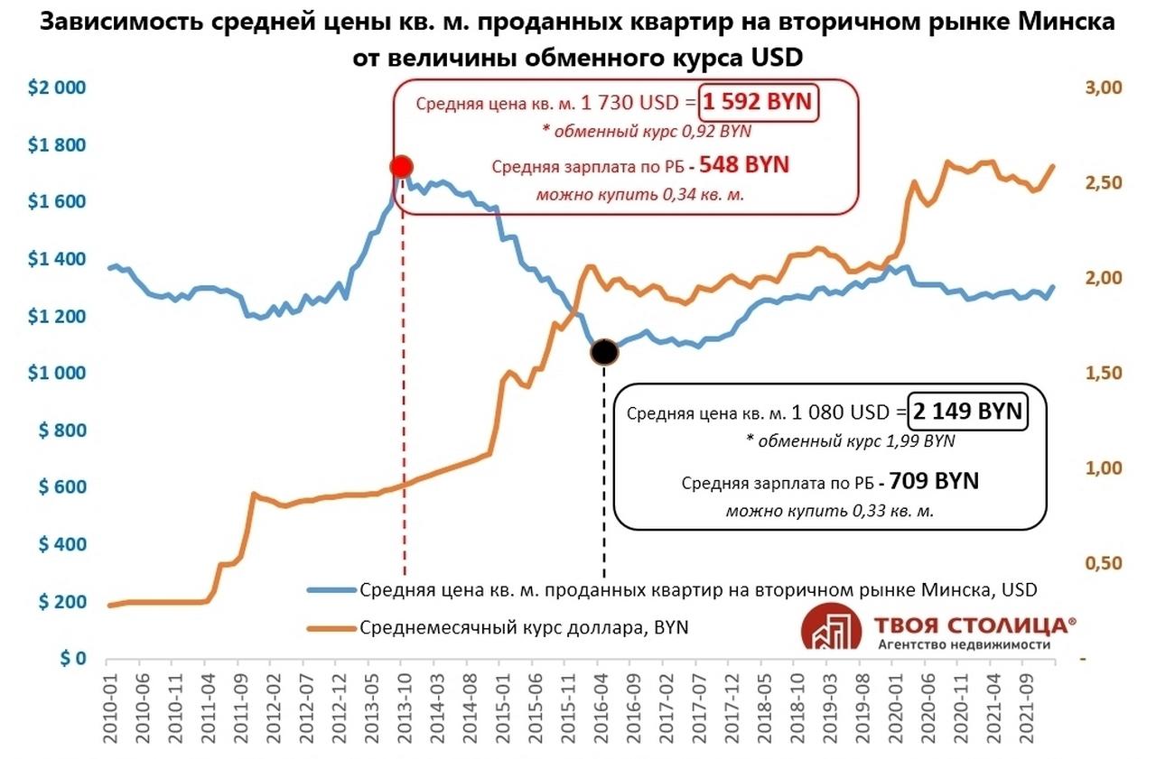 То есть для заключения выгодной сделки продавцы должны учитывать не только курс доллара, но и покупательскую способность. В ситуации, когда валюта растет в цене, а потенциальные клиенты получают доходы в BYN, а не USD, покупательская способность снижается, жилье по увеличенным ценам становится неподъемным, спрос падает и рынок начинает проседать.