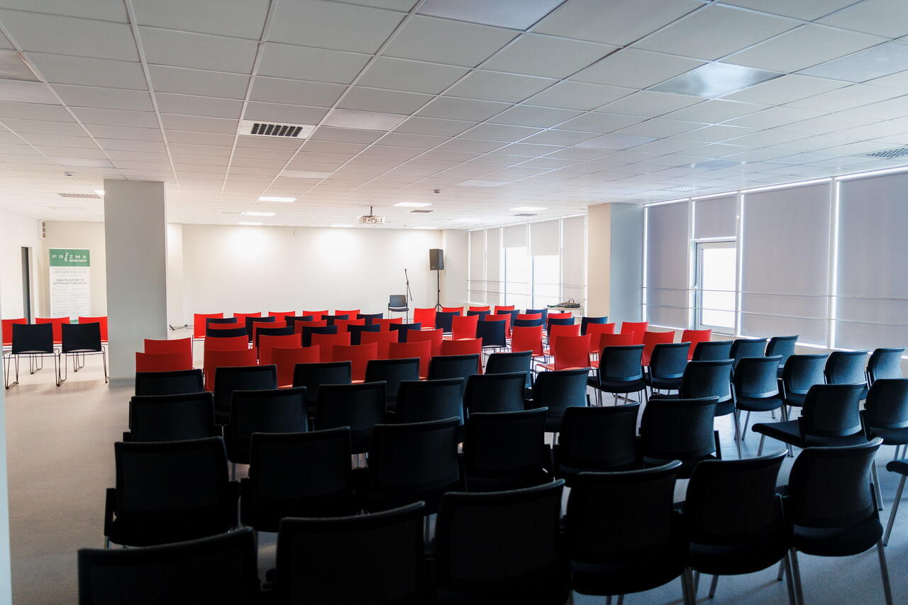 Часть пятого этажа занимает конференц-зал. Его могут забронировать арендаторы под встречи с партнерами и клиентами, там же будут проводить деловые мероприятия.